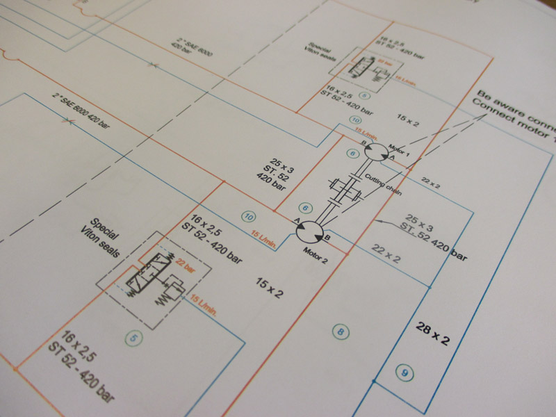 Hyproma heeft een hydraulisch ontwerp gemaakt voor een drainagemachine. Met deze machine worden geulen gegraven en daarin drains, ten behoeve van de drainage, geplaatst. Dit is voor het afvoeren van grondwater. Deze machine wordt door zes hydraulische pompen en proportionele stuurventielen aangestuurd. Daarnaast komen vele andere hydraulische aspecten in het systeem naar voren: open en gesloten systemen en proportionele en zwart/wit hydrauliek. Dit systeem wordt toegepast in de agrosector.
