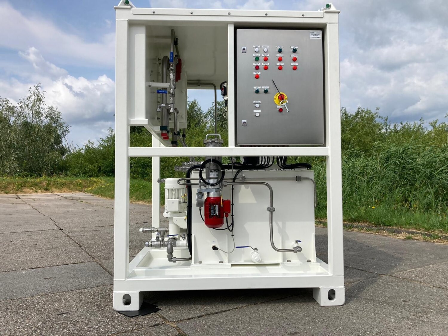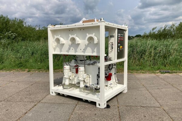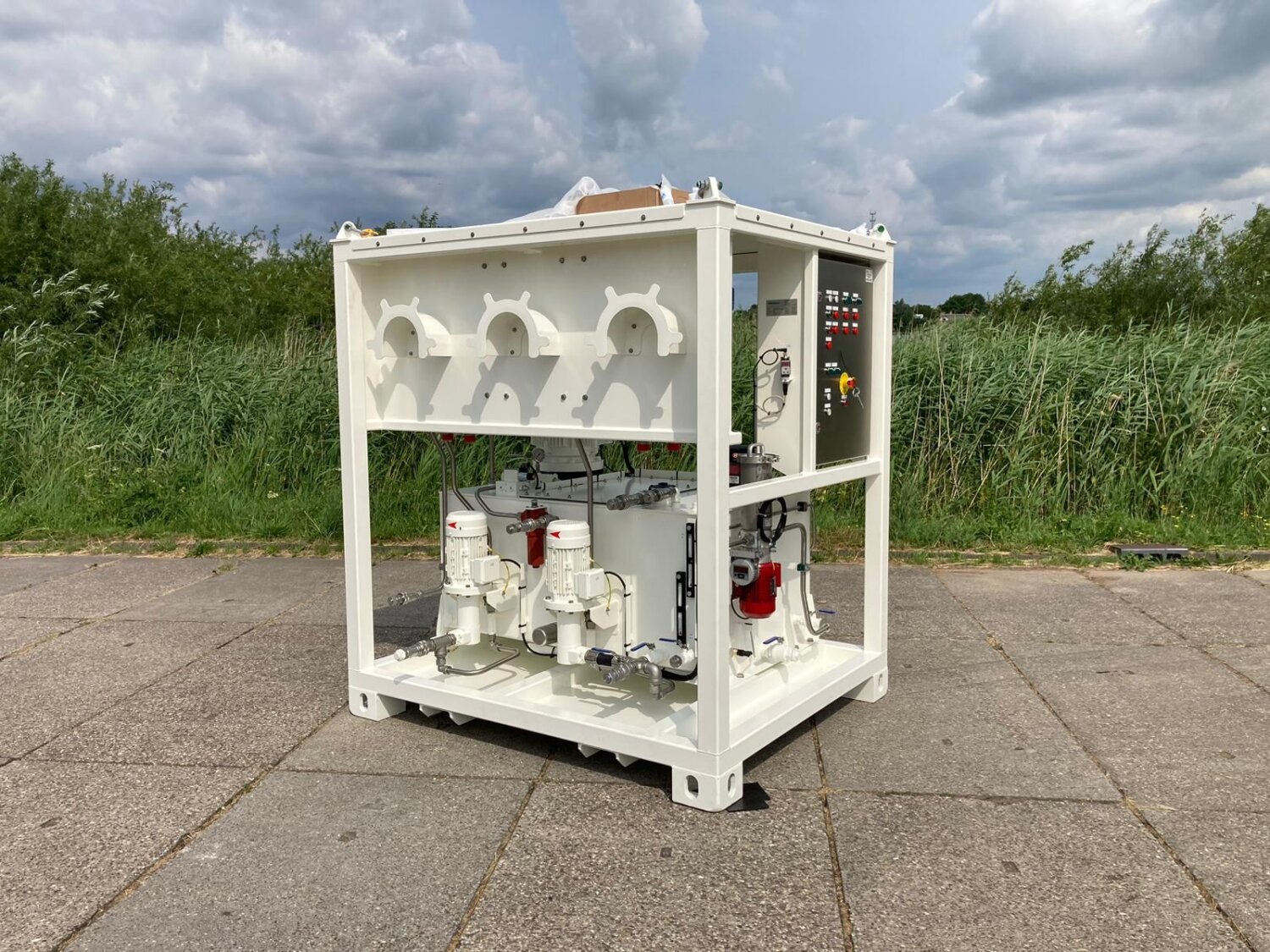 Deze deck-HPU is bedoeld voor het verpompen van hydrauliekolie. De tank, besturingskast en leidingen zijn volledig gemaakt van RVS 316. Daarnaast is de HPU geschikt voor biodegradable oil. De unit is makkelijk op het deck te plaatsen door middel van de twist-locks. Een Hydac OLF zorgt voor een constante filtering en monitoring van de olie. Uitgevoerd met RVS snelkoppelingen is het “plug-and-play”!